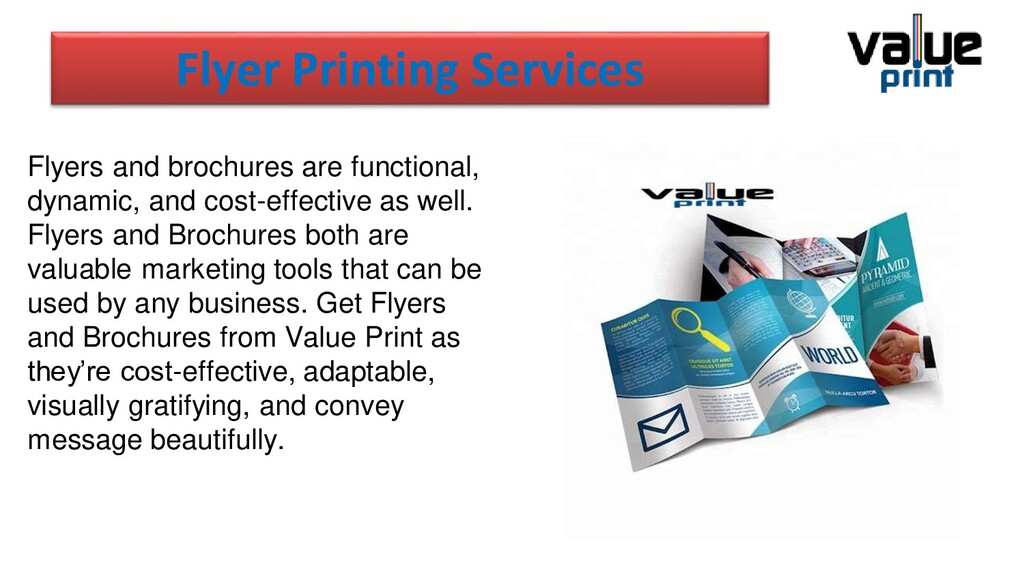 Flyers and Brochures both are valuable marketing tools that can be used by any business. Get Flyers and Brochures from Value Print as they’re cost-effective, adaptable, visually gratifying, and convey message beautifully. Flyer Printing Services
