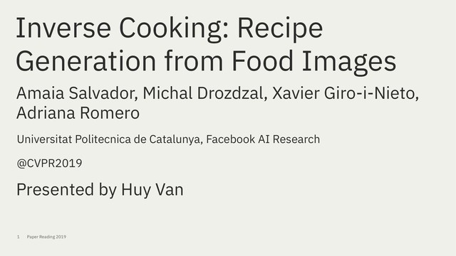 Drozdzal, Xavier Giro-i-Nieto, Adriana Romero Universitat Politecnica de Catalunya, Facebook AI Research @CVPR2019 Presented by Huy Van 1 Paper Reading 2019