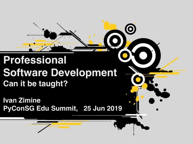 Professional Software Development Can it be taught? Ivan Zimine PyConSG