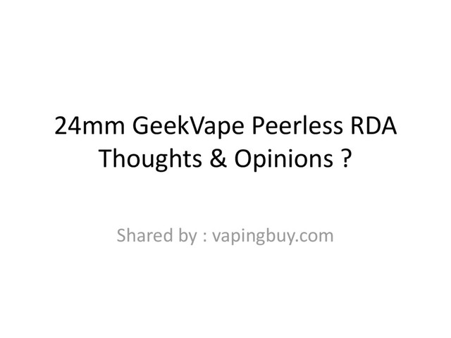 http://www.vapingbuy.com/product/geekvape-peerless-rda-peerless-rda/ ,GeekVape New Introducted 24mm RDA : Peerless RDA released ! The Geek Vape Peerless RDA is a awesome rebuildable dripping atomizer with creative featues and function and this article presents some thoughts,opinions toward peerless rda by geekvape,hope it will be useful.