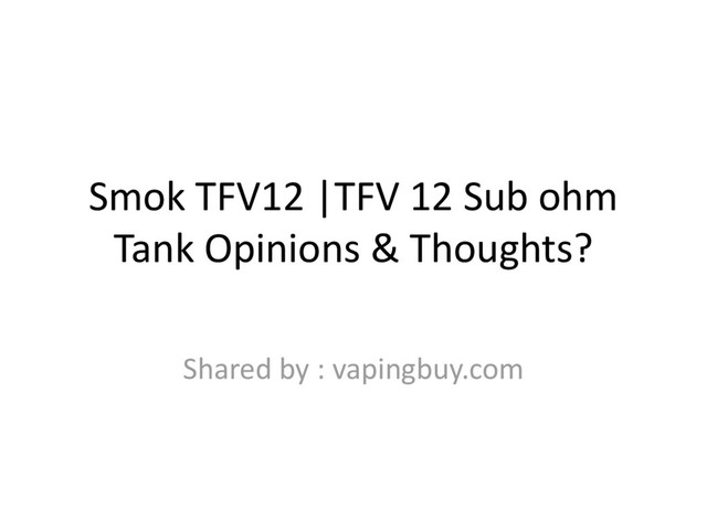www.vapingbuy.com/product/smok-tfv12-cloud-beast-king-tank/ , New SMOK Sub ohm Tank,called : SMOK TFV12 is released ! The TFV12 Tank is a amazing tank with 6mL ejuice capacity,high wattage supported and RBA available and so on. This article presents some thoughts on TFV12 Sub ohm Tank,check it to get a first impression about TFV 12.