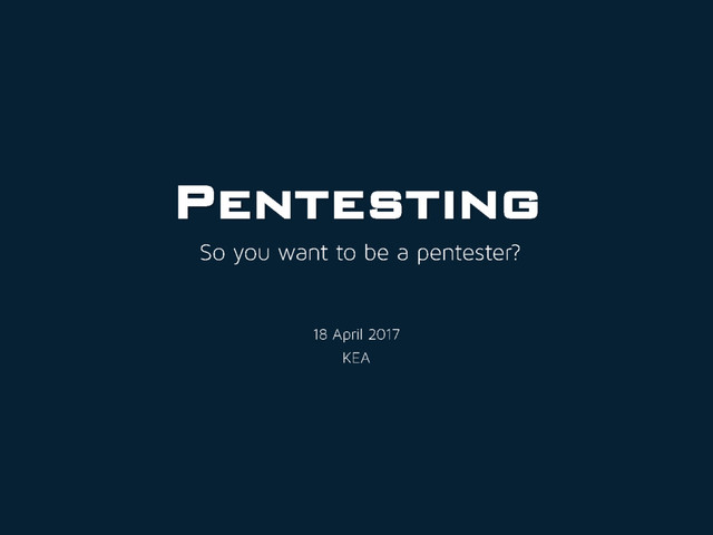 This presentation gives the viewer an idea of what it is to be a pentester full-time, what a pentester typically works with, how to learn ethical hacking, and improving your chances of getting a full-time job.
