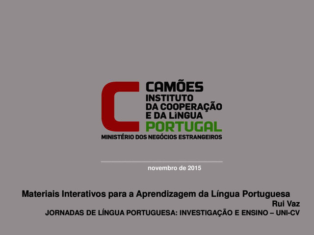 e Certificação Direção de Serviços de Língua e Cultura Camões, IP Documentação, Conceção e Produção Divisão de Programação, Formação e Certificação Direção de Serviços de Língua e Cultura Novembro de 2015