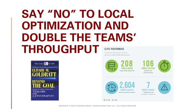 SAY “NO” TO LOCAL OPTIMIZATION AND DOUBLE THE TEAMS’ THROUGHPUT
