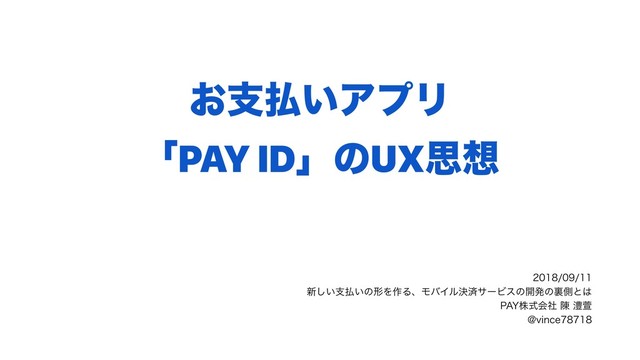 ͓ࢧ͍ΞϓϦ ʮPAY IDʯͷUXࢥ ৽͍͠ࢧ͍ͷܗΛ࡞ΔɺϞόΠϧܾࡁαʔϏεͷ։ൃͷཪଆͱ 1":גࣜձࣾ㦐ל !WJODF