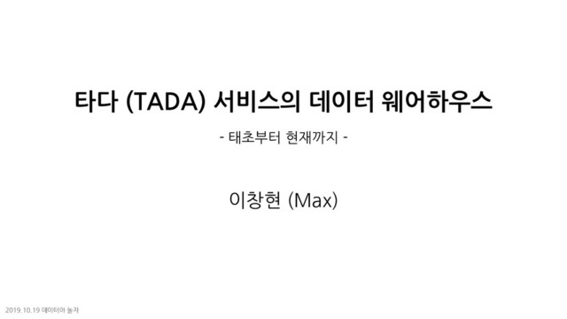 2019년 10월 8일 : 타다 베이직 런칭 1주년 2019.10.19 데이터야 놀자
