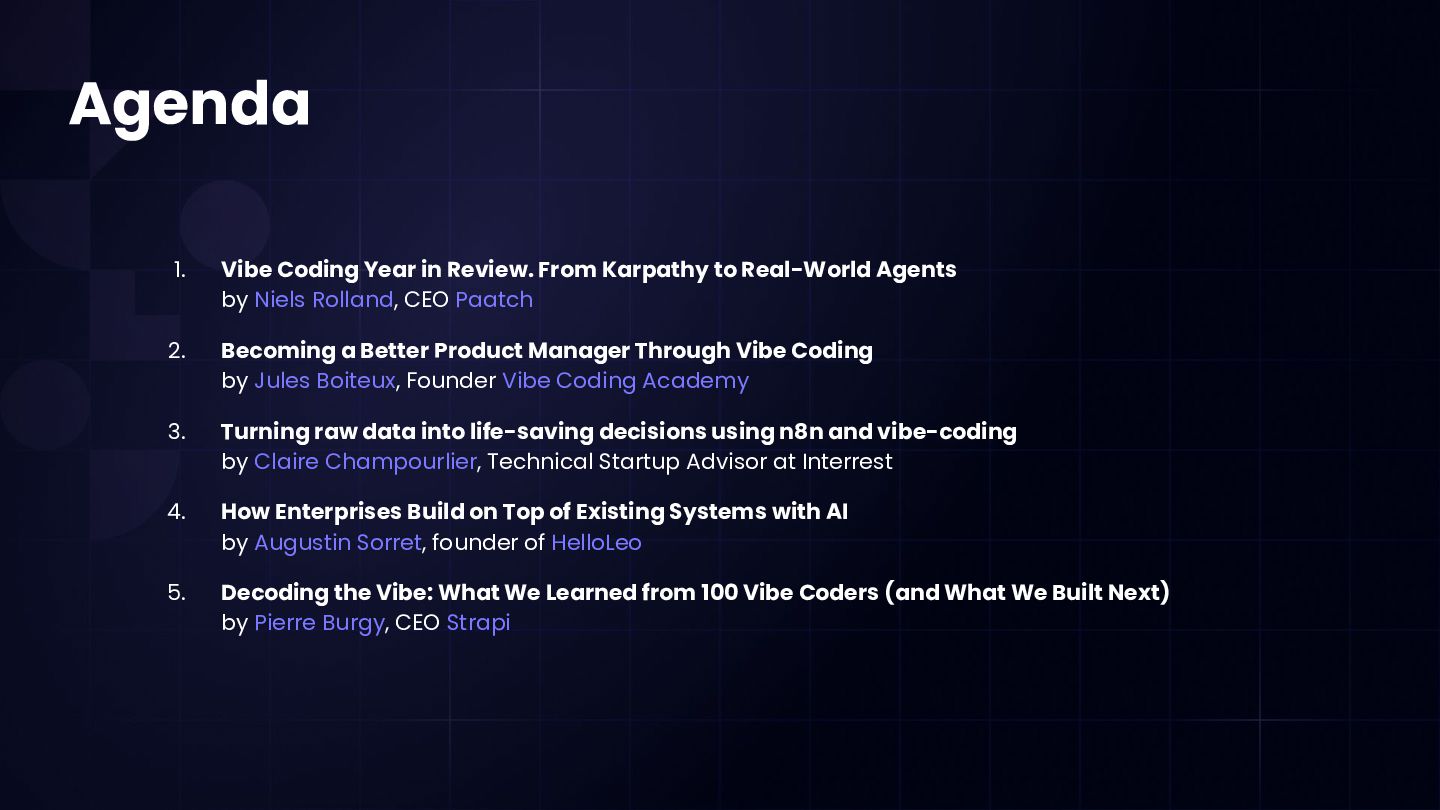 Pierre wrapped up the evening with a data-driven exploration of the **vibe coding landscape**.