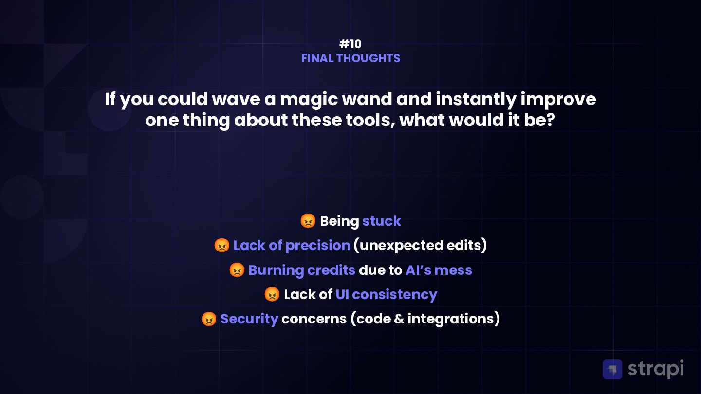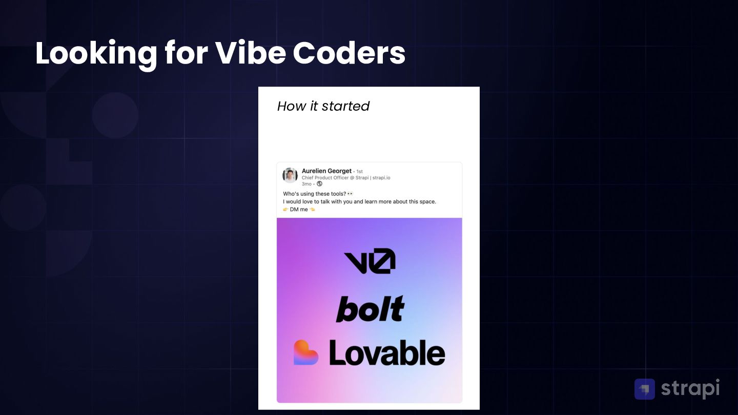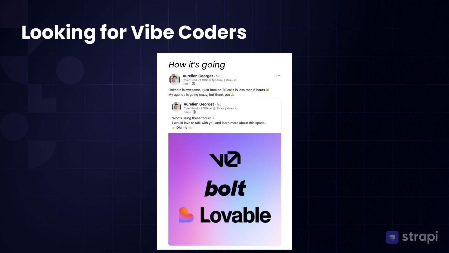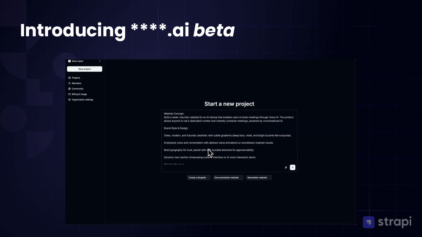 He concluded with a teaser: the launch of **Strapi’s upcoming AI project (`****.ai beta`) — born from these learnings and focused on empowering the next generation of AI-native creators.