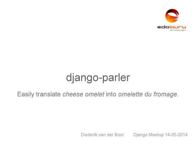Extended version of my previous django-parler presentation. Explain why django-modeltranslation or django-hvad were nog used, and what complex inheritance I'd faced. Now features such as:
