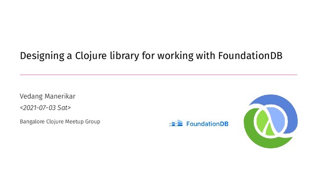 This talk introduces the reader to the basic concepts of FoundationDB and takes them through the journey of building a Clojure library - https://github.com/vedang/clj_fdb - for interacting with it.