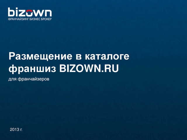 стран СНГ, реализующая весь спектр услуг по сопровождению сделок на рынке франчайзинга. это не просто площадка для размещения франчайзингового предложения, а еще профессиональный бизнес брокер, работа которого значительно увеличивает объемы продаж вашей франшизы. О проекте bizown.ru