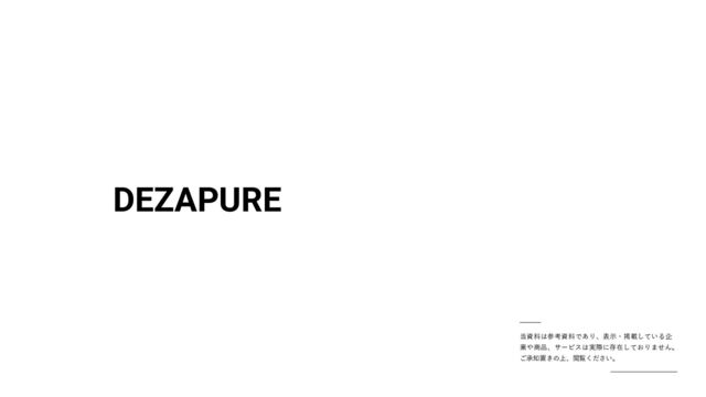 DEZAPURE 当資料は参考資料であり、表⽰・掲載している企 業や商品、サービスは実際に存在しておりません。 ご承知置きの上、閲覧ください。