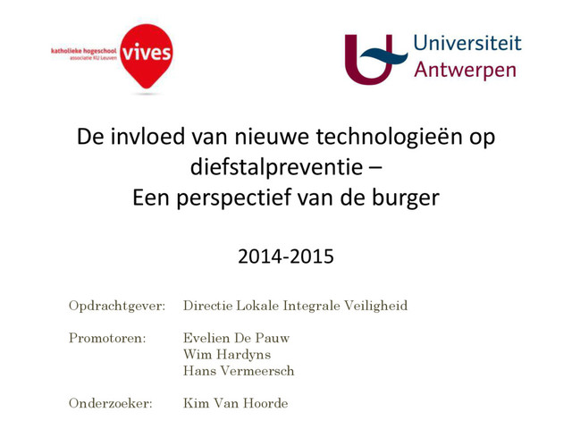 van de burger 2014-2015 Opdrachtgever: Directie Lokale Integrale Veiligheid Promotoren: Evelien De Pauw Wim Hardyns Hans Vermeersch Onderzoeker: Kim Van Hoorde