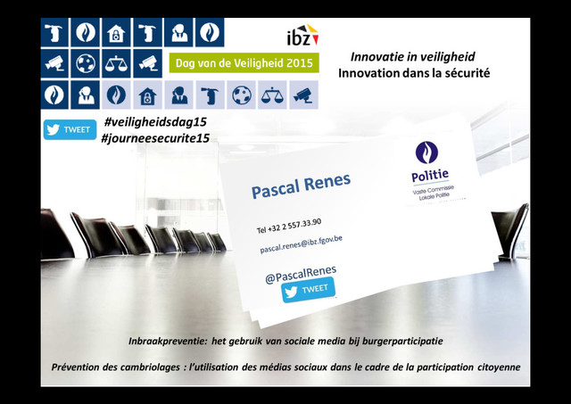 - Dré van Roomen / Marco Schillemans @WA_RsdThema @BuurtPNispen - @schillemans Innovatie in veiligheid Innovation dans la sécurité #veiligheidsdag15 #journeesecurite15