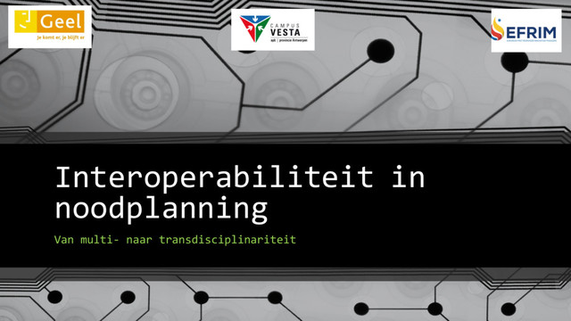 • Effectief en efficiënt informatie delen • Compatibel • Communicatie, interactie, uitwisseling • Standaarden, protocollen, procedures Rob Testelmans - ANP Stad Geel - Dag van de Veiligheid 10 december 2015