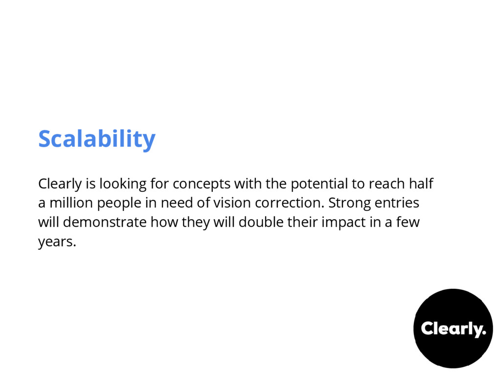 reach half a million people in need of vision correction. Strong entries will demonstrate how they will double their impact in a few years.