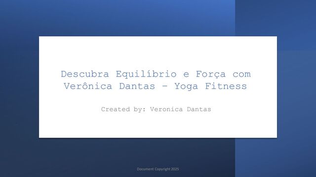 No mundo acelerado de hoje, encontrar harmonia entre mente, corpo e espírito é essencial. Veronica Dantas, uma instrutora dedicada de ioga e fitness, está aqui para guiá-lo em uma jornada transformadora em direção à saúde e ao bem-estar.