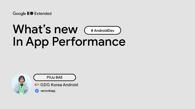What’s new in App Performanc e IO 21 Measuring Jank and Startup with Macrobenchmark Resources veronikapj GDG Korea Android PilJu BAE developer.android.com