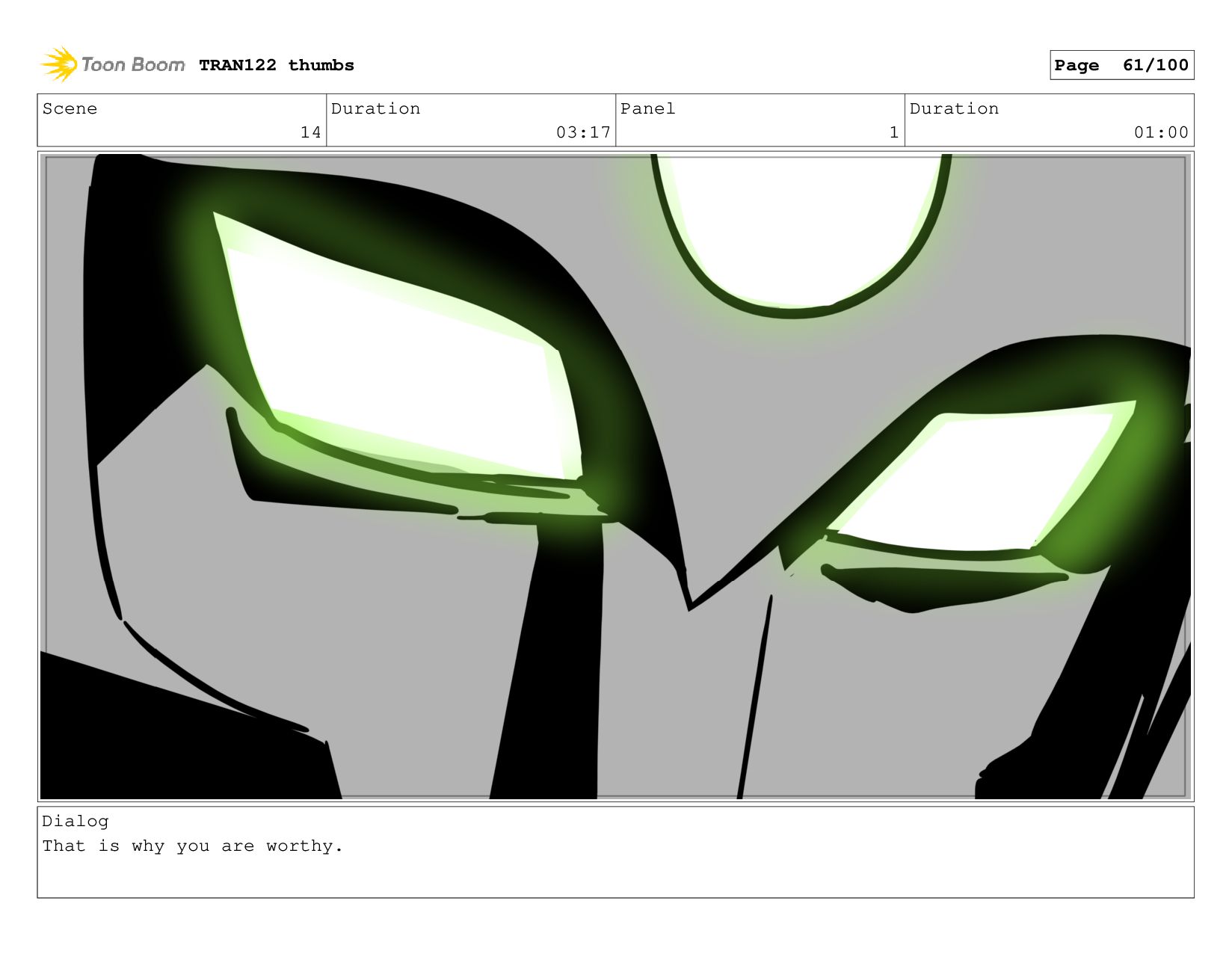 Scene 16 Duration 08:00 Panel 1 Duration 01:00 TRAN122 thumbs