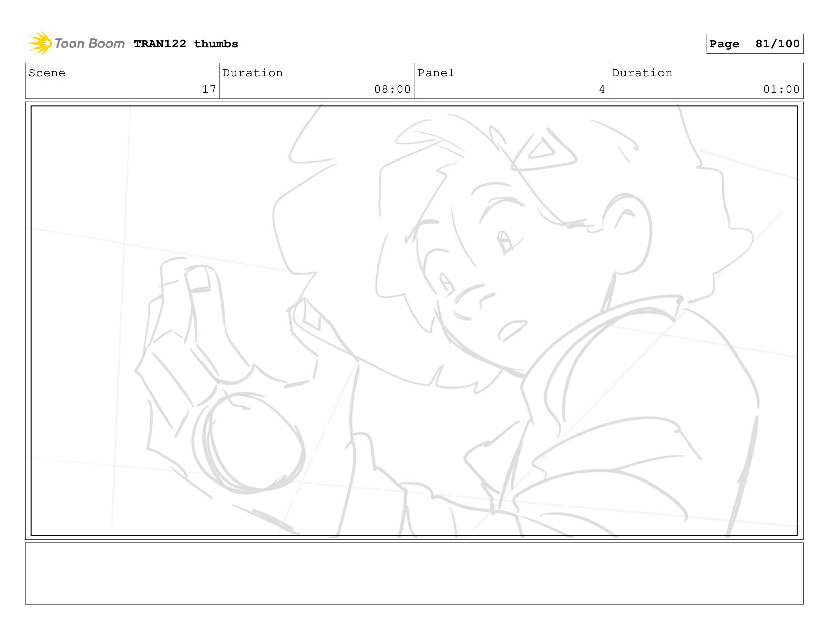 Scene 17 Duration 08:00 Panel 4 Duration 01:00 TRAN122 thumbs