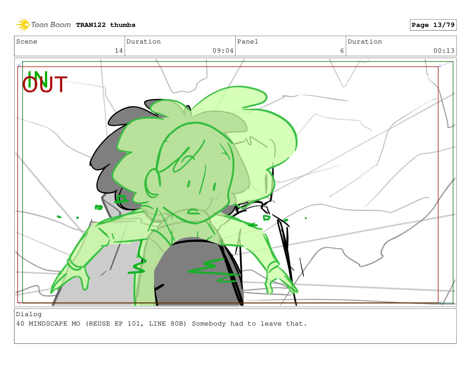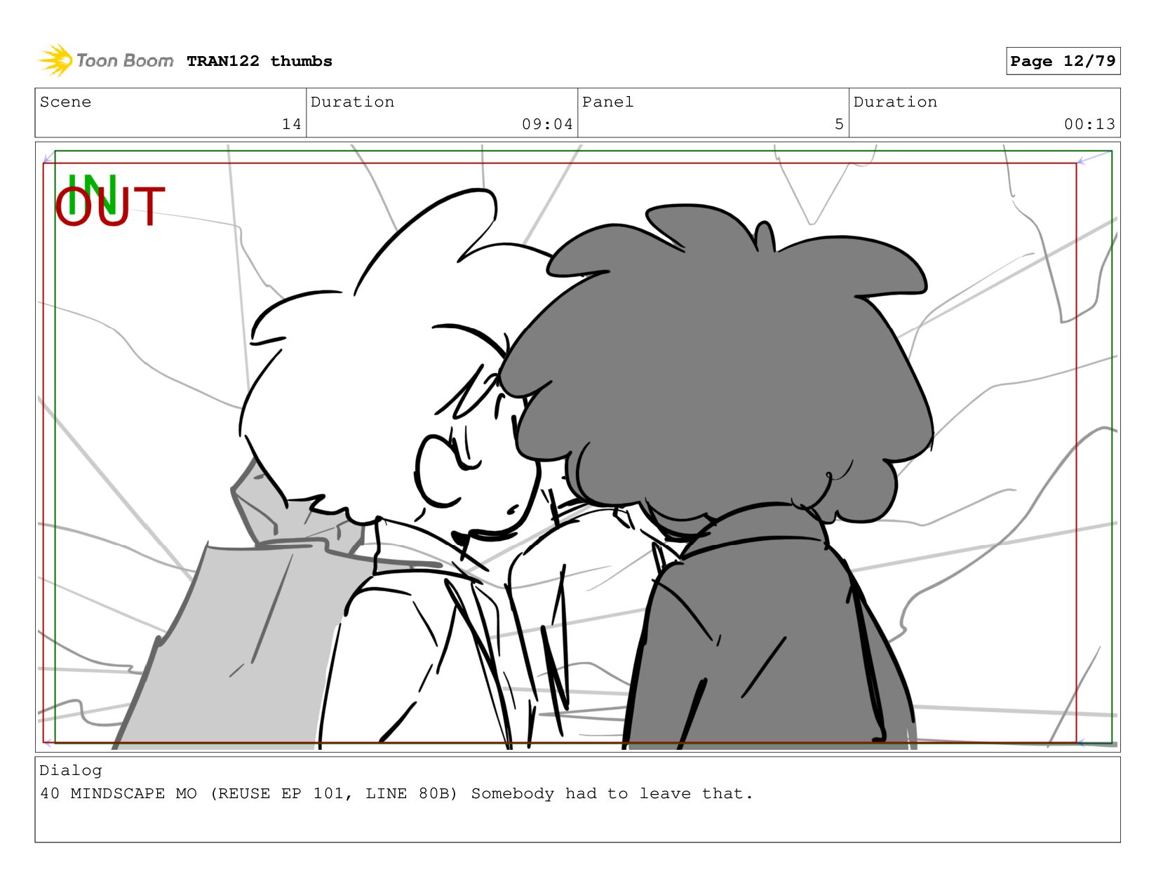 Scene 14 Duration 09:04 Panel 5 Duration 00:13 Dialog 40