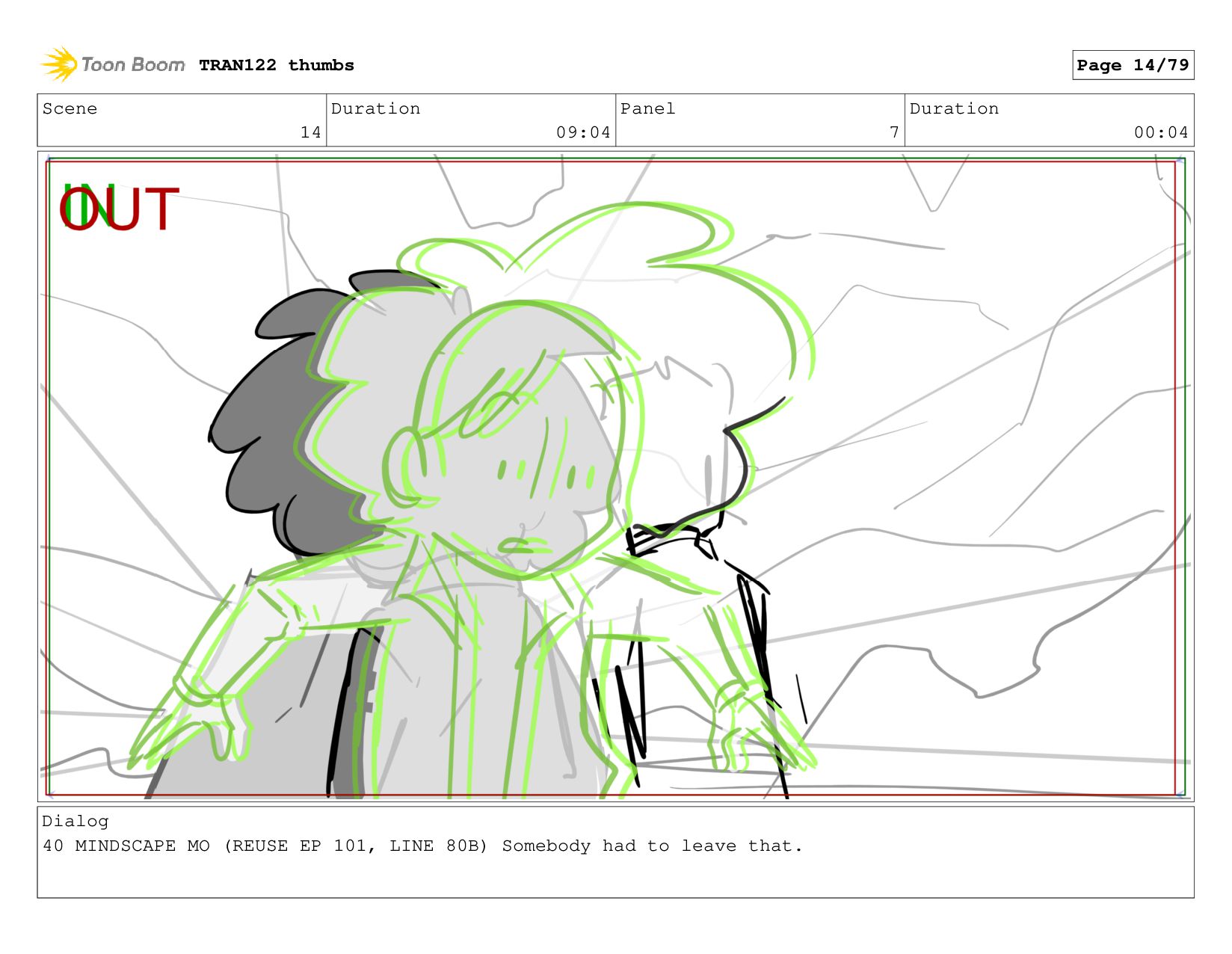Scene 14 Duration 09:04 Panel 7 Duration 00:04 Dialog 40