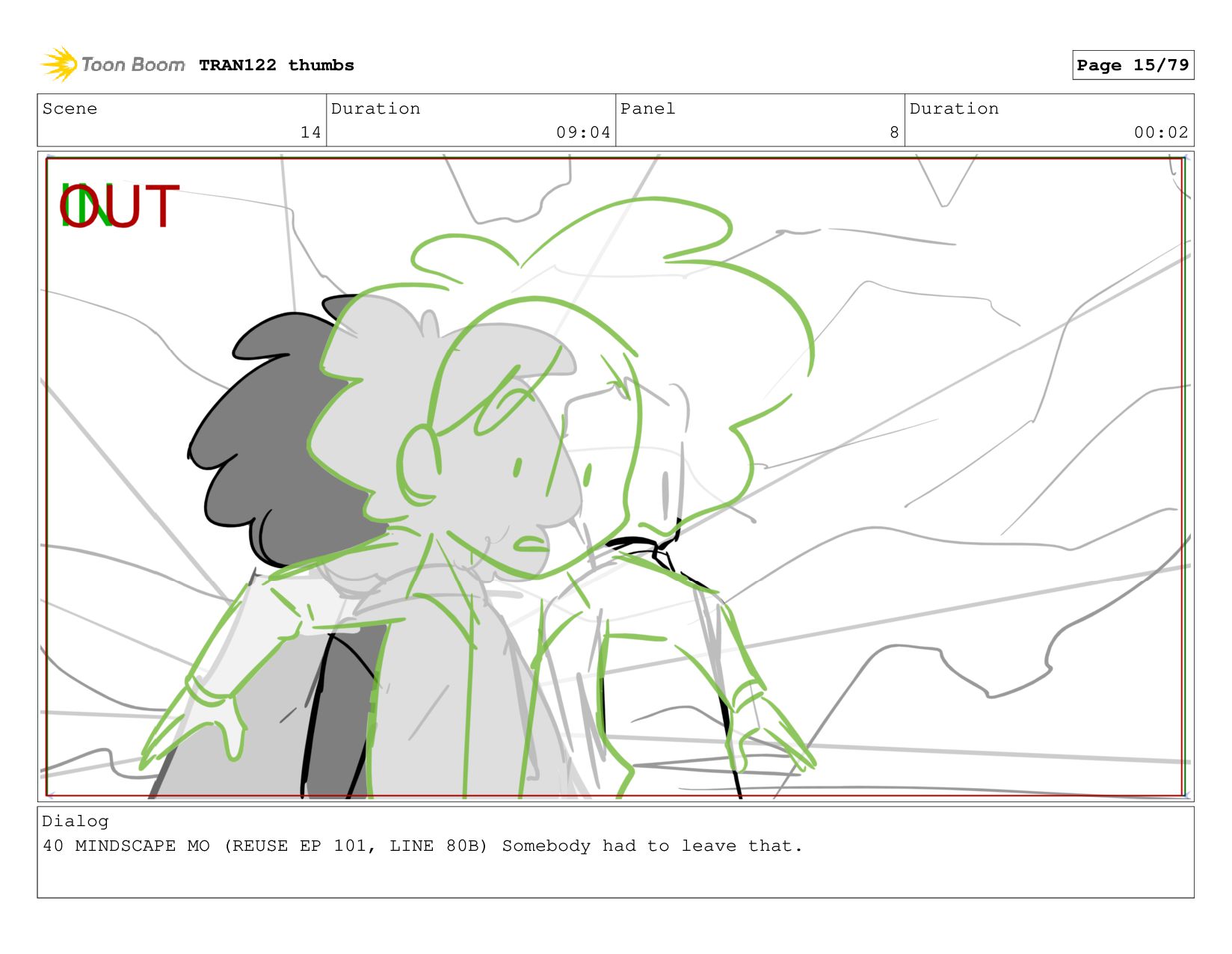 Scene 14 Duration 09:04 Panel 8 Duration 00:02 Dialog 40