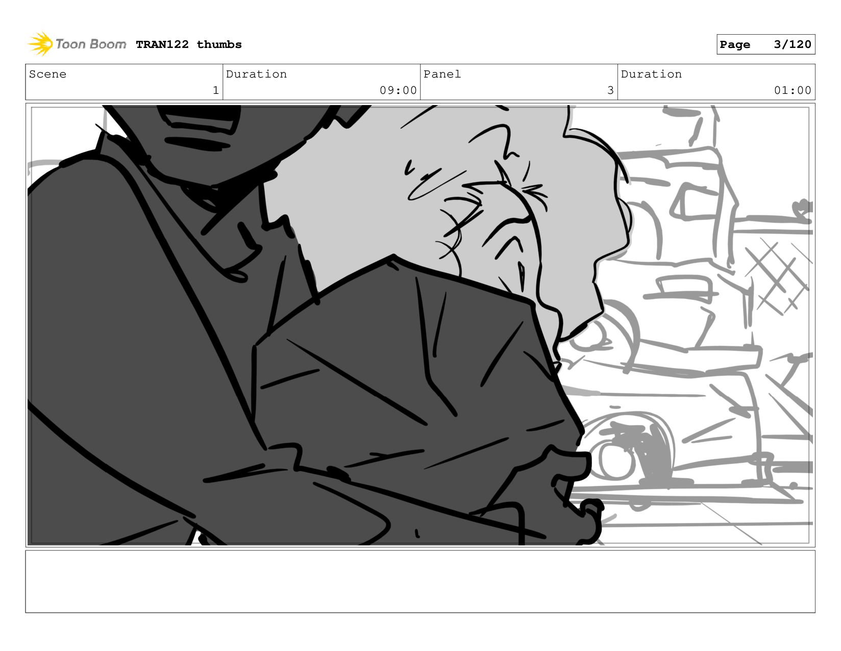 Scene 12 Duration 03:00 Panel 1 Duration 01:00 TRAN122 thumbs