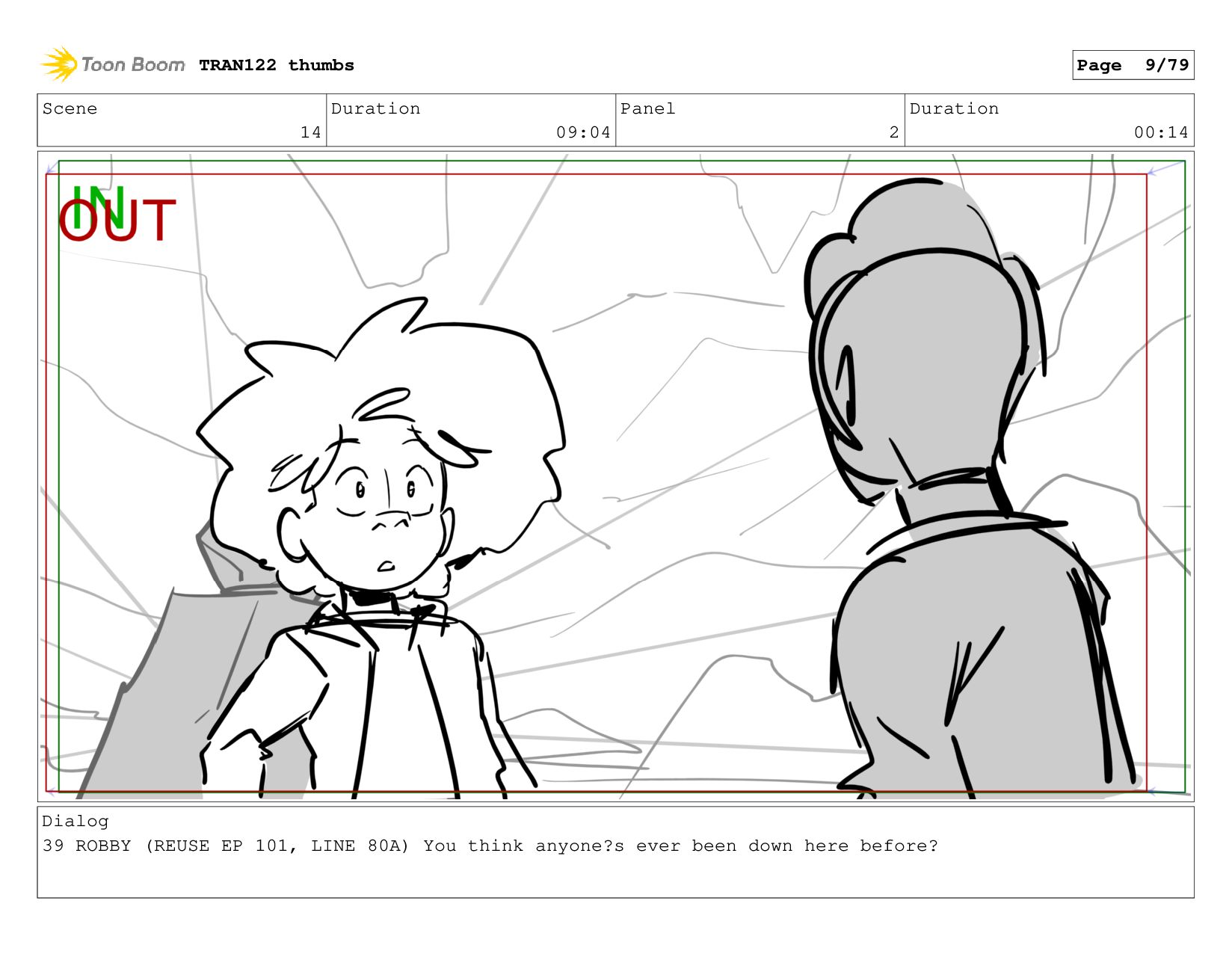 Scene 14 Duration 09:04 Panel 1 Duration 00:10 Dialog 39