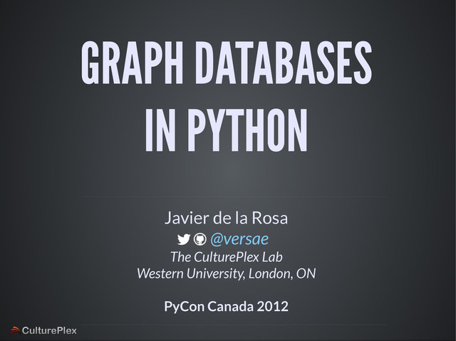 Since the irruption in the market of the NoSQL concept, graph databases have been traditionally designed to be used with Java or C. With some honorable exceptions, there isn't an easy way to manage graph databases from Python. In this talk, I will introduce you some of the tools that you can use today in order to work with those new challenging databases, from our favorite languge, Python.
