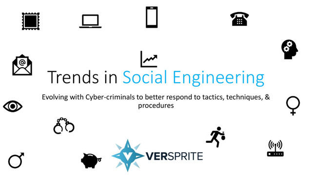 compliment other attack vectors (e.g. – phone, email, SMS) ▪ Persistence within an organization is the ultimate goal ▪ Criminals don’t need to walk away with flash drives of data anymore ▪ Planting bugs far more effect; reduction from getting caught ▪ Criminals will collude with cyber criminals to case a property and ‘plant’ a device ▪ Door shimming ▪ Drone based recon missions ▪ Tailing a target ▪ Diversion based attacks ▪ Tailgating is king ▪ Card skimming ▪ Bio Spoofing ▪ Dumpster Diving ▪ Colluding with the Insider
