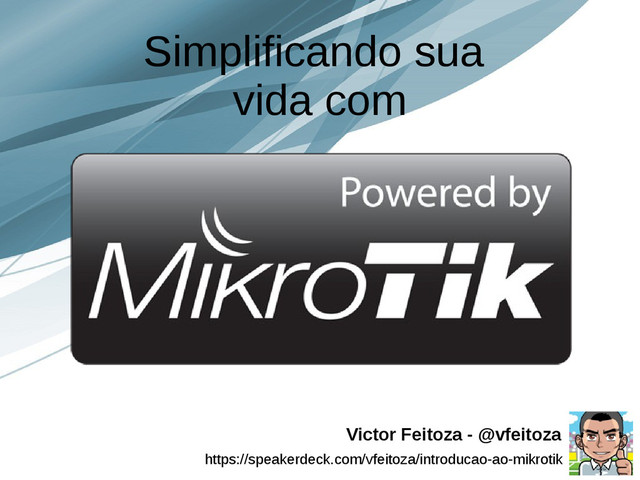 263025 NOC AS 263025 • NOC AS 52919 NOC AS 52919 • Desenvolvedor Desenvolvedor • SEO TecPage Solutions SEO TecPage Solutions • Apaixonado por PHP Apaixonado por PHP Victor Feitoza - @vfeitoza https://speakerdeck.com/vfeitoza/introducao-ao-mikrotik