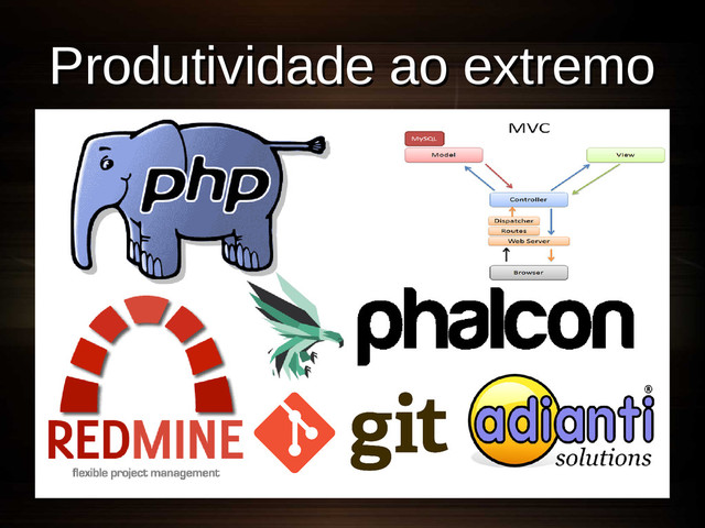 Primeiro framework PHP com toolkits Web e Gtk! Gtk! • Ambiente de produtividade próprio; Ambiente de produtividade próprio; • Geração de código-fonte padronizado; Geração de código-fonte padronizado; • Designer de formulários (XML); Designer de formulários (XML); • Implementa diversos padrões de projeto; Implementa diversos padrões de projeto; • Focado em aplicações de negócios; Focado em aplicações de negócios; • Uso intensivo de tratamento de exceções; Uso intensivo de tratamento de exceções; • 100% Orientado a objetos; 100% Orientado a objetos; • Biblioteca de widgets baseada em Biblioteca de widgets baseada em componentes; componentes; Victor Feitoza - @vfeitoza