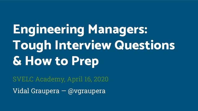 In this interactive workshop, Vidal will share the questions - and his own real-life experience answering them - and interviewing for engineering manager roles.