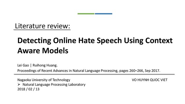 Extract four types of features, word-level and character-level n-gram features and two types of lexicon derived features. • Word-level n-grams : bigrams, tri-grams and four-grams • Character-level n-grams : unigrams and bigrams • LIWC feature: • 2015 dictionary which contain 125 semantic categories. • NRC Emotion Lexicon Feature: • a list of English words that were labeled with eight basic emotions (anger, fear, anticipation, trust, surprise, sadness, joy, and disgust)
