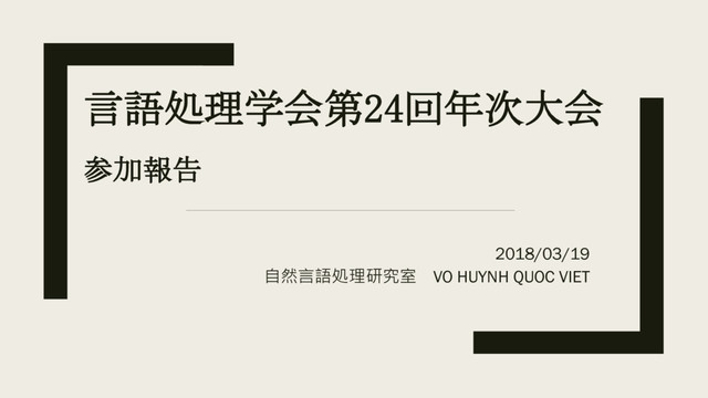 言語処理学会第24回年次大会 参加報告 2018/03/19 自然言語処理研究室 VO HUYNH QUOC VIET
