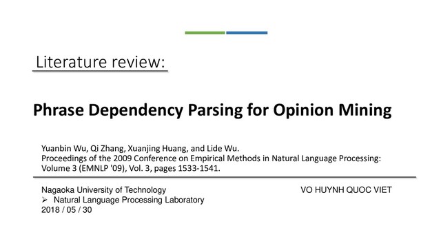 feature and its nearest opinion expression, which is also used in (Hu and Liu, 2004). • SVM-1 To compare with tree kernel based approaches used in (Kobayashi et al., 2007) • SVM-2 is designed to compare the effectiveness of cross-domain performances. The features used are simple bag of words and POS-Tags between opinion expressions and product features. • SVM-WTree uses head words of opinion expressions and product features in the word-level dependency tree, as the previous works in information extraction. Then conducts tree kernel proposed by Culotta and Sorensen (2004). • SVM-PTree denotes the results of this paper’s treekernel based SVM. Stanford parser (Klein and Manning, 2002) and Sundance (Riloff and Phillips, 2004) are used as lexical dependency parser and shallow parser. • OERight is the result of SVM-PTree with correct opinion expressions. • PFRight is the result of SVM-PTree with correct product features.