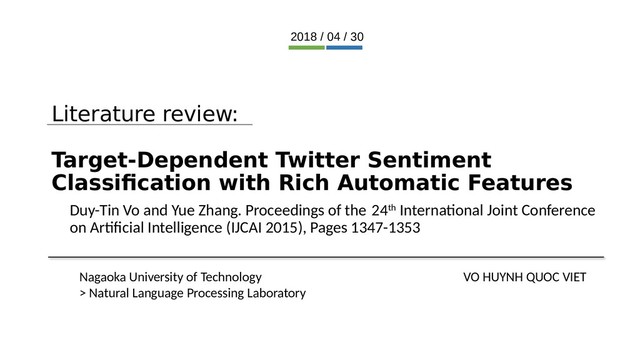 tweets and 692 testing tweets, with a balanced number of positive, negative and neutral tweets (25%, 25%, and 50%). •Is manually annotated with sentiment labels (negative, positive, and neutral) toward given targets (such as “bill gates”, “google” and “xbox”) Sentiment lexicons