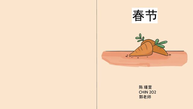 A children's story written in basic Chinese learned in the CHIN 202 course. "Spring Festival" tells the story of Mei, a happy rabbit who learns the importance of patience and hard work throughout the celebration of the harvest.