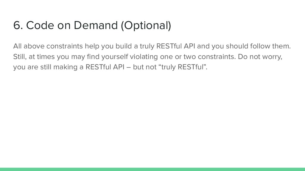 build a truly RESTful API and you should follow them. Still, at times you may find yourself violating one or two constraints. Do not worry, you are still making a RESTful API – but not “truly RESTful”.