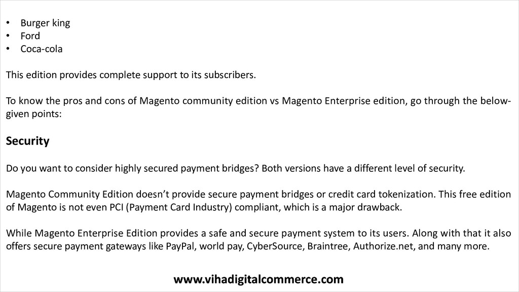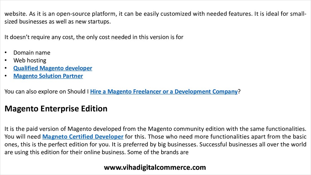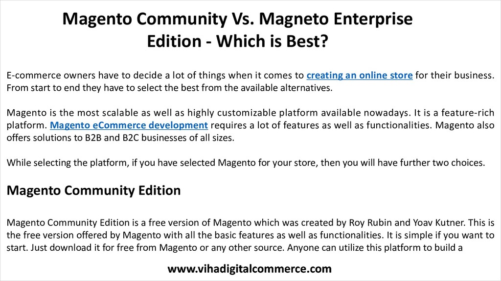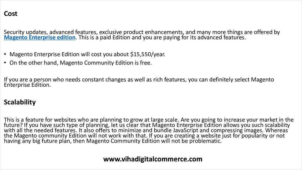 Read More: https://www.vihadigitalcommerce.com/magento-community-vs-magneto-enterprise-edition/