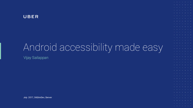 Talks about how accessibility services work in Android, common mistakes that make apps inaccessible, how Uber approaches accessibility and ideas for scalable accessibility testing.