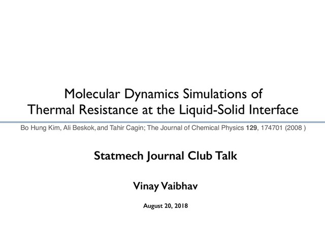 Molecular Dynamics Simulations of Thermal Resistance at the Liquid-Solid Interface