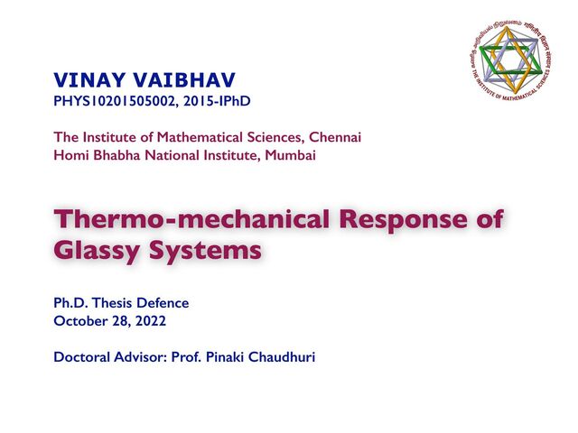 Institute of Mathematical Sciences, Chennai Homi Bhabha National Institute, Mumbai Ph.D. Thesis Defence October 28, 2022 Doctoral Advisor: Prof. Pinaki Chaudhuri