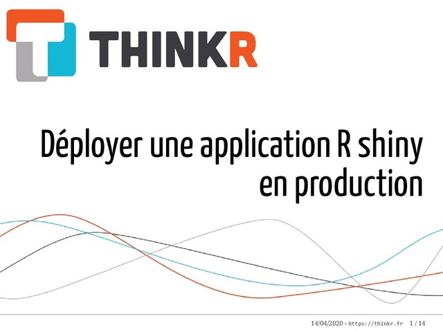 fluidPage( h1("demogolem") ) ) } #' @import shiny golem_add_external_resources <- function() { addResourcePath('www', system.file('app/www', package = 'demogolem')) tags$head( golem::activate_js(), golem::favicon() #tags$link(rel="stylesheet", type="text/css", href="www/custom.css") ) } 14/04/2020 - https://thinkr.fr 9 / 14 Human talks - Déployer une application R shiny en production