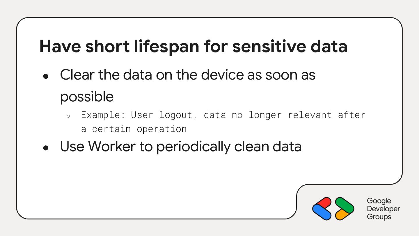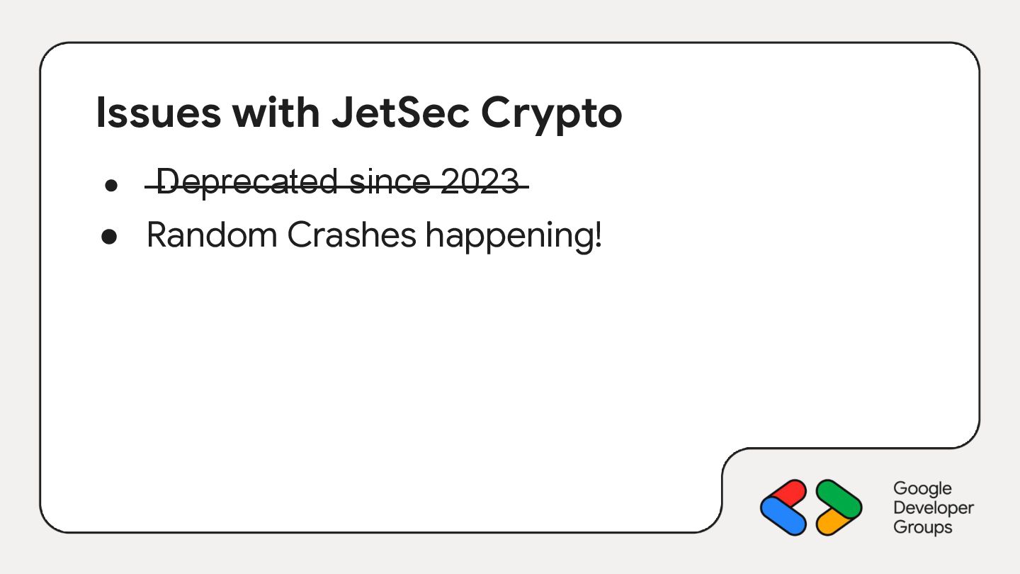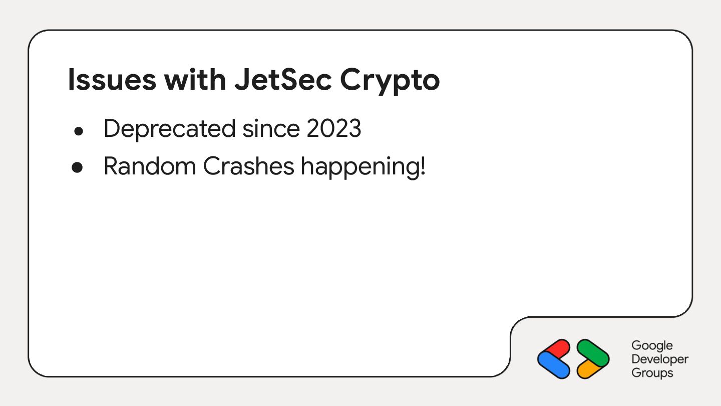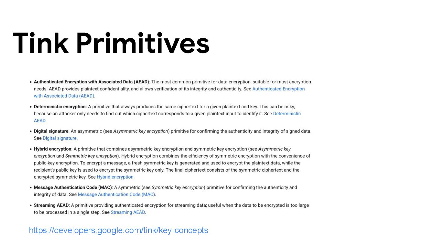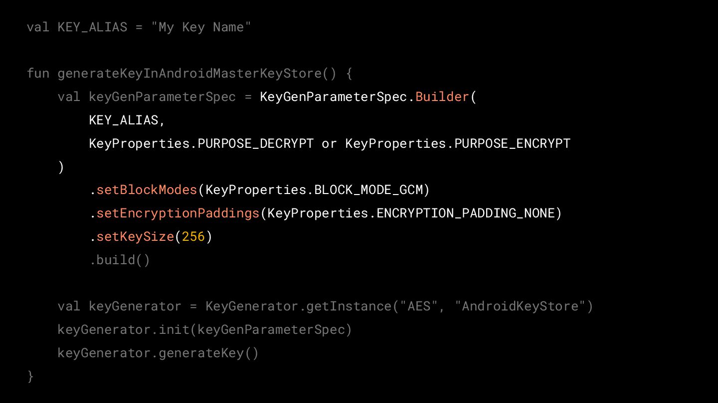 be stored in cleartext. This is not as bad as it sounds because keysets remain inaccessible to any other apps running on the same device. Moreover, as of July 2020, most active Android devices support either full-disk encryption or file-based encryption, which provide strong security protection against key theft even from attackers with physical access to the device. Android Keystore is only useful when you want to require user authentication for key use, which should be done if and only if you're absolutely sure that Android Keystore is working properly on your target devices. “ https://javadoc.io/static/com.google.crypto.tink/tink-android/1.16.0/com/google/ crypto/tink/integration/android/AndroidKeysetManager.html