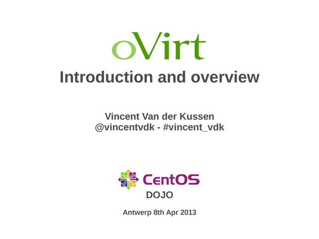 – Ruby (rbovirt) Ruby (rbovirt) • Integrate with your infrastructure. Integrate with your infrastructure. • Used scripts Used scripts – https://github.com/vincentvdk/ovirt-scripts https://github.com/vincentvdk/ovirt-scripts