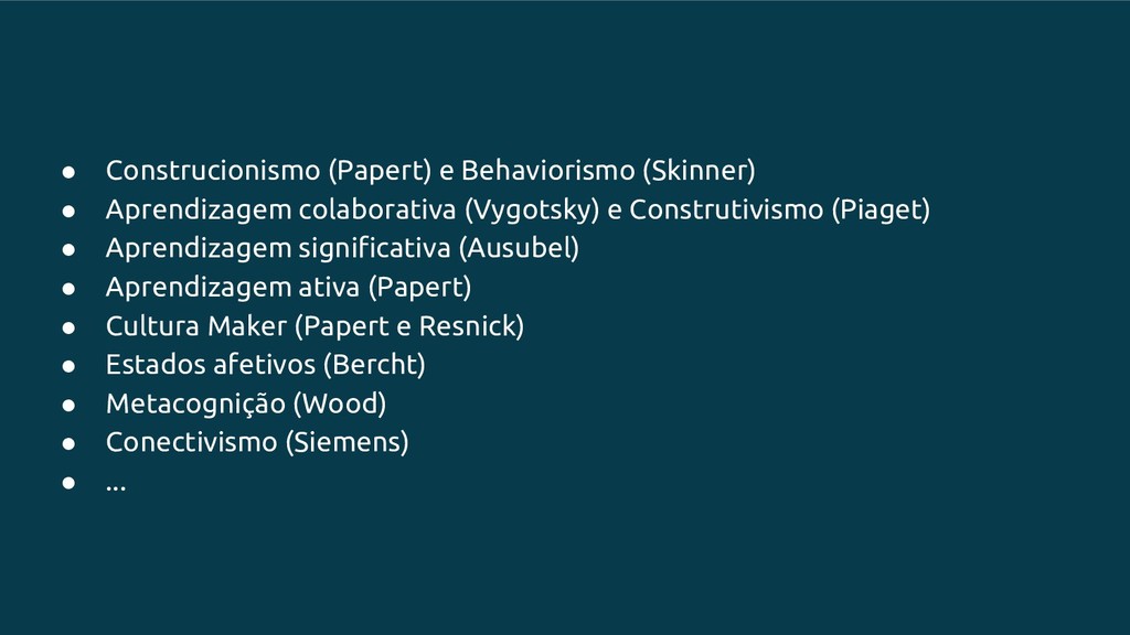 Education • Revista Novas Tecnologias na Educação • Simpósio Brasileiro de Informática na Educação • Revista Latinoamericana de Tecnología Educativa • Informática na Educação: Teoria e Prática • Congresso Brasileiro de Ensino Superior a Distância