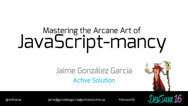 Join me at the school of JavaScript-mancy as we travel along the modern landscape of writing JavaScript in 2015 and beyond, as we discover the organic evolution of this beautiful language and its thriving ecosystem, and delve in the latest features/spells/incantations of the JavaScript Arcana.