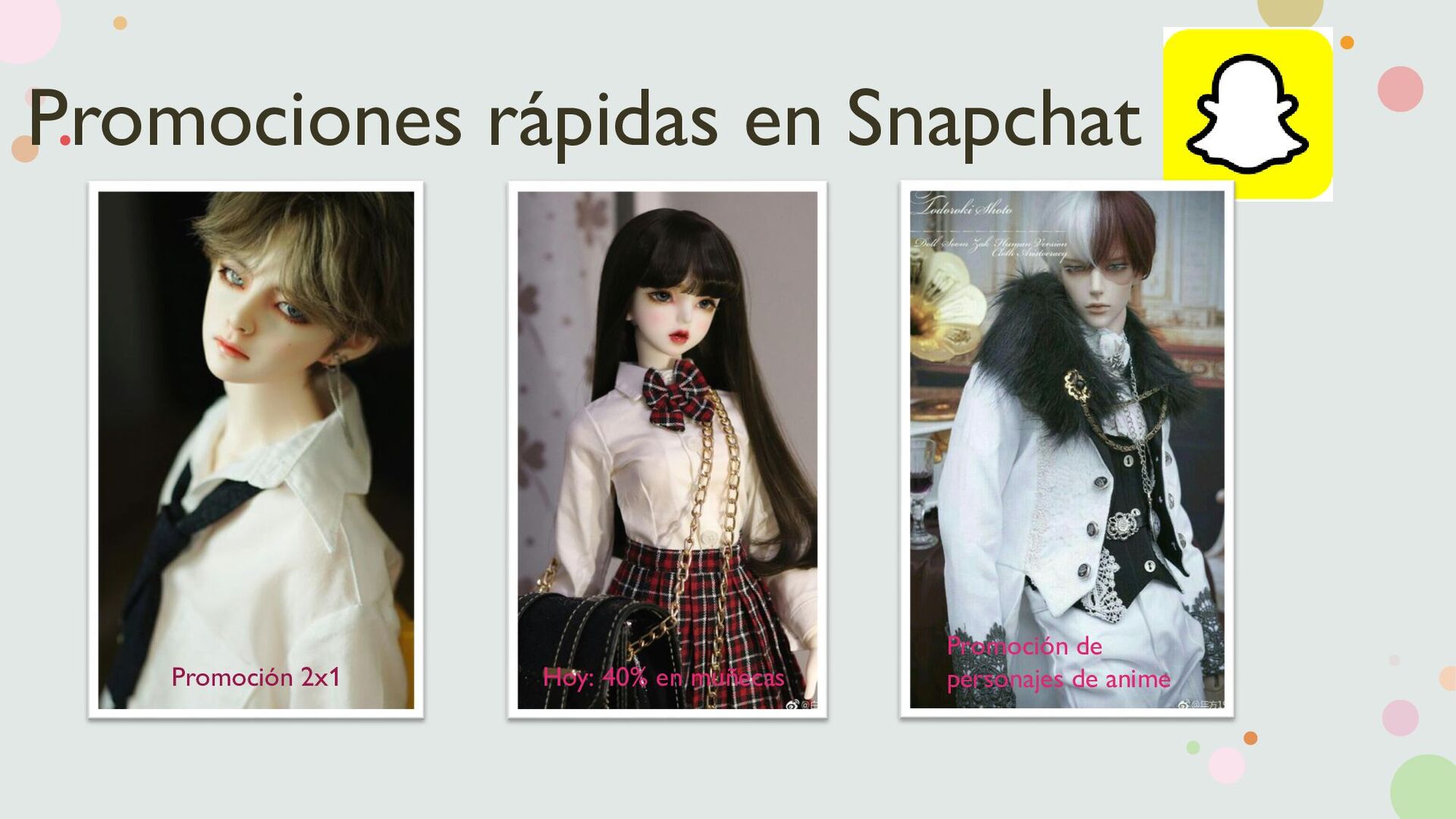 Promociones rápidas en Snapchat Promoción 2x1 Hoy: 40% en muñecas